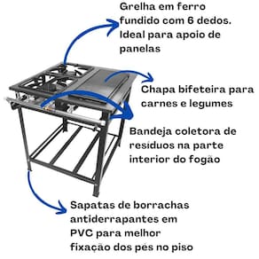 Conheça melhor o Fogão Industrial P7 2 Bocas 2QS Baixa Pressão com Chapa Bifeteira de Piso Metalfour