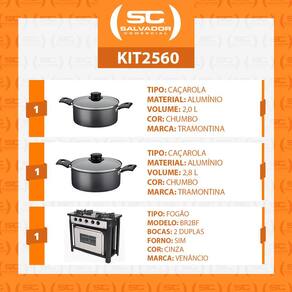 Fogão Industrial 2 Bocas com Forno Bravo Cinza Venâncio + 2 Caçarolas Tramontina Turim
