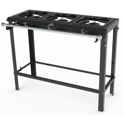 - 2 queimadores simples em material fundido com chama dupla de 120 mm de diâmetro;