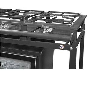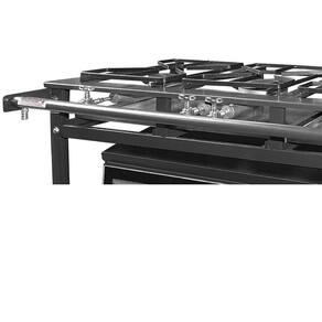 Também conta com acabamento em pintura eletrostática epóxi (tinta atóxica e não inflamável) e funcionamento a gás baixa pressão. O controle da chama do fogão pode ser feito através dos registros tipo borboleta, que permitem o ajuste conforme a necessidade de uso. Além disso, as grelhas 30x30 6 pontas perfil 5 cm são feitas em aço carbono e os queimadores deste fogão a gás fabricados em ferro fundido, sendo o queimador duplo de 140mm de diâmetro e o queimador simples com 100 mm.