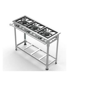 Fogão Industrial 3 Bocas 30x30 AP P5 em Aço Inox 03 Queimadores Simples 100mm Grelhas em Ferro Fundido Queimadores em Ferro Fundido Estrutura Confeccionada em Aço Inox 430 Perfil 5 ( 5 cm Entre os Queimadores ) Garantia : 6 Meses Contra Defeitos de Fabricação .