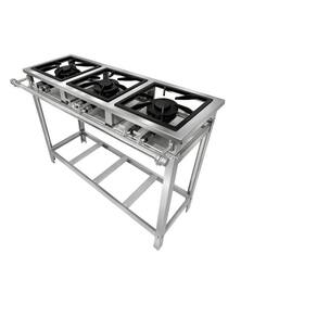 Fogão Industrial 3 Bocas Duplas 30x30 P5 em Aço Inox 03 Queimadores Duplos 140mm Grelhas em Ferro Fundido Queimadores em Ferro Fundido Estrutura Confeccionada em Aço Inox 430 Perfil 5 ( 5cm Entre os Queimadores). Garantia : 06 Meses Contra Defeitos de Fabricação