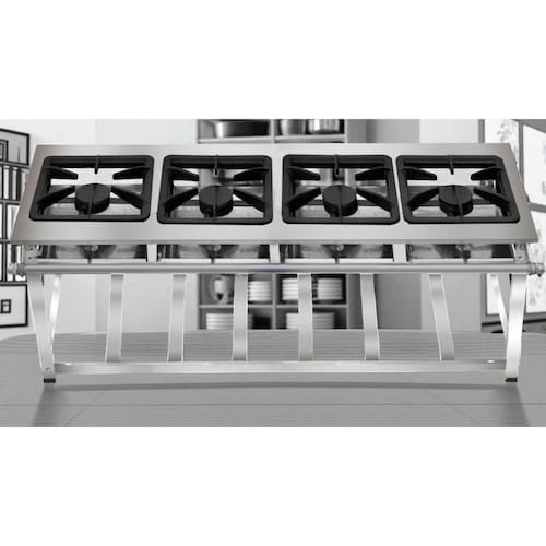 Fogão Industrial de Alta Pressão À Gás GLP (BOTIJÃO)Linha Tradicional Perfil 7Grelhas em ferro fundido 30cmx30cm4 Queimadores Simples 130mmBandeja coletora de resíduoChapa em aço Inox 430Medidas do Fogão Montado:Altura : 80cmLargura : 147cmProfundidade : 52cm Marca: Não Informado Ean: 7894701710527