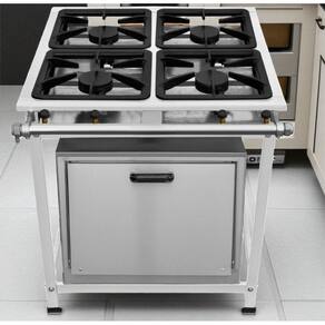 Fogão Industrial de Baixa Pressão À Gás GLP (BOTIJÃO)Linha Standard Perfil 5Grelhas em ferro fundido 30cmx30cm4 Queimadores Simples 100mmBandeja coletora de resíduoChapa em aço Inox 430Forno de 92L Tampa em Aço InoxMedidas do Fogão Montado:Altura : 80cmLargura : 73cmProfundidade : 80cm Marca: Não Informado Ean: 7892410843222