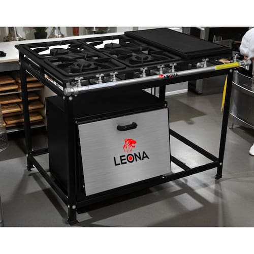 Fogão Industrial de Baixa Pressão À Gás GLP (BOTIJÃO)Linha Tradicional Perfil 7Grelhas em ferro fundido 30cmx30cm2 Queimadores Duplos 170mm 2 Simples 130mmBandeja coletora de resíduoPintura preta texturizada epóxi de alta resistênciaChapa em aço carbonoForno de 92L Tampa em Aço InoxMedidas do Fogão Montado:Altura : 80cmLargura : 115cmProfundidade : 83cm Marca: Não Informado Ean: 7890452321623