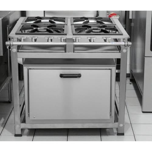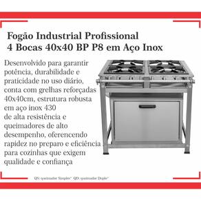 Fogão Industrial de Baixa Pressão À Gás GLP (BOTIJÃO)Linha Luxo Inox Perfil 8Grelhas em ferro fundido 40cmx40cm2 Queimadores Duplos 170mm 2 Simples 130mmBandeja coletora de resíduoChapa em aço Inox 430Forno de 92L Tampa em Aço InoxMedidas do Fogão Montado:Altura : 80cmLargura : 111cmProfundidade : 101cm Marca: Não Informado Ean: 7895863288589