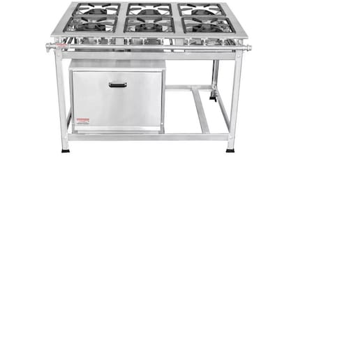Fogão Industrial 6 Bocas 30x30 P7 em Aço Inox com Forno03 Queimadores Duplos 170mm03 Queimadores Simples 100mmGrelhas em Ferro Fundido Queimadores em Ferro Fundido Estrutura Confeccionada em Aço Inox 430Forno de 92L Tampa em Aço InoxPerfil 7 (7cm Entre os Queimadores) Garantia : 06 Meses Contra Defeitos de Fabricação.Medidas :Altura : 80cmLargura : 115cmProfundidade : 83cm Marca: Não Informado