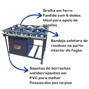 Acompanha grelhas internas, para melhor utilização calorifica da queima do gás, tornando-o mais econômico e eficaz.