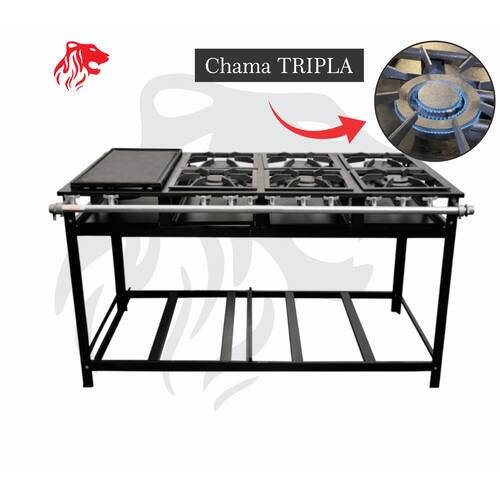 Fogão Industrial de Baixa Pressão À Gás GLP (BOTIJÃO)Linha Tradicional Perfil 7Grelhas em ferro fundido 30cmx30cm3 Queimadores Triplos 170mm 3 Simples 130mmBandeja coletora de resíduoPintura preta texturizada epóxi de alta resistênciaChapa em aço carbonoMedidas do Fogão Montado:Altura : 80cmLargura : 151cmProfundidade : 88cm Marca: Não Informado Ean: 7892702012435