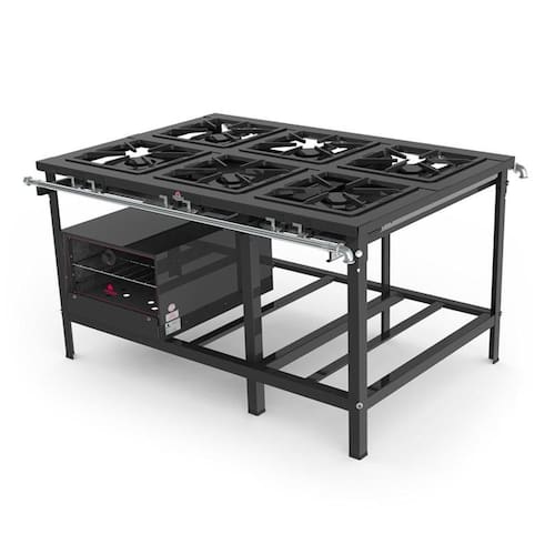- 6 queimadores duplos em material fundido de 200 mm de diâmetro;