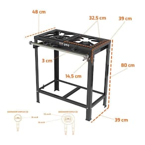 Quantidade de Bocas: 2 | Tipo de Instalação: Piso | Tipo de montagem: De piso | Alimentação: a Gás | Cor: Preto