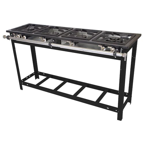Para quem procura um fogão industrial baixa pressão com excelente custo benefício e alto desempenho o fogão a gás 4 bocas 2 duplas em linha Venâncio é a melhor escolha! Este fogão profissional é ideal para ser utilizado em bares, restaurantes, lanchonetes, petiscarias, chácaras, espaços de festas, sítios e muito mais. Sua estrutura é confeccionada em aço carbono com pintura a pó eletrostática e base fosfatizada, proporcionando muito mais durabilidade e resistência ao equipamento. Conta com grelhas 30x30 e queimadores fabricados em ferro fundido, além de queimadores simples e duplos com 100mm e 160mm de diâmetro respectivamente, para máxima potência do fogão a gás 4 bocas. Os queimadores deste fogão industrial possuem alto rendimento e sua potência é de 4.959 kca/h para as bocas duplas e 1.938 kcal/h para as simples. Além disso, possui encaixe de fácil remoção para higienização e manutenção do produto!