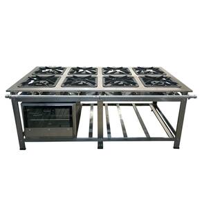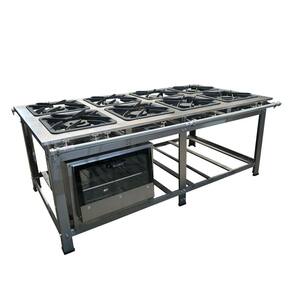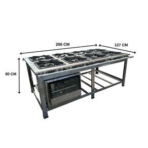 O Fogão Industrial de Centro 8 Bocas 4 Duplas Cefaz Linha Gold Baixa Pressão Inox com Forno 100 Litros Tampa de Vidro C-I430-CFZG-167+I430-FRG-22 é um equipamento completo, ideal para restaurantes, lanchonetes, escolas e diversos tipos de comércio que buscam qualidade e eficiência. O fogão industrial é projetado para agilizar e facilitar o serviço na cozinha, oferecendo um visual elegante e alta performance. Sua mesa estampada evita o acúmulo de resíduos, garantindo máxima higiene. Com um tubo de alimentação de gás de 1 1/4 polegada, proporciona excelente vazão de gás para os queimadores. As grelhas de ferro fundido 40x40 cm suportam panelas e tachos pesados, permitindo um cozimento rápido e eficaz, mesmo em longas horas de funcionamento e altas temperaturas. A estrutura do fogão é feita em aço inox 430, oferecendo durabilidade e resistência.