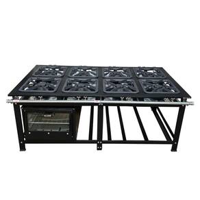 O Fogão Industrial de Centro 8 Bocas Duplas Cefaz Linha Gold Baixa Pressão Aço Carbono com Forno 100 Litros Tampa de Vidro C-CFZG-159+FRG-22 é um equipamento completo, ideal para restaurantes, lanchonetes, escolas e diversos tipos de comércio que buscam qualidade e eficiência. O fogão industrial é projetado para agilizar e facilitar o serviço na cozinha, oferecendo um visual elegante e alta performance. Sua mesa estampada evita o acúmulo de resíduos, garantindo máxima higiene. Com um tubo de alimentação de gás de 1 1/4 polegada, proporciona excelente vazão de gás para os queimadores. As grelhas de ferro fundido 40x40 cm suportam panelas e tachos pesados, permitindo um cozimento rápido e eficaz, mesmo em longas horas de funcionamento e altas temperaturas. A estrutura do fogão é feita em aço carbono pintado, oferecendo durabilidade e resistência.