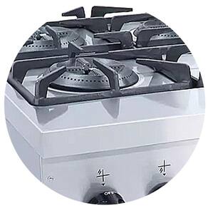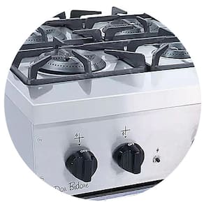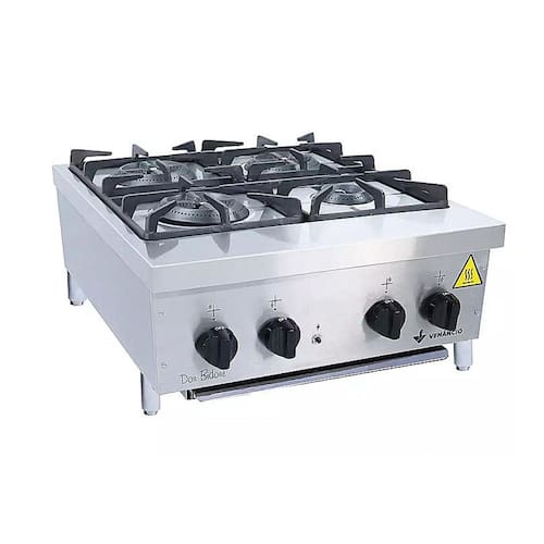 Fogão industrial de 4 bocas da linha de fogões Don Bidone, ideal para quem prima por qualidade, velocidade e sofisticação, transformando sua cozinha em um ambiente para pessoas exigentes e de bom gosto. Possui alimentação de baixa pressão de gás GLP e revestimento em aço inoxidável.