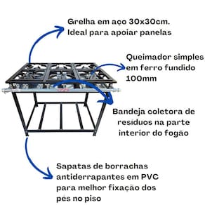 Consumo: 200gr/hr por queimador simples e 400gr/hr por queimador duplo