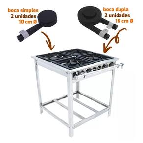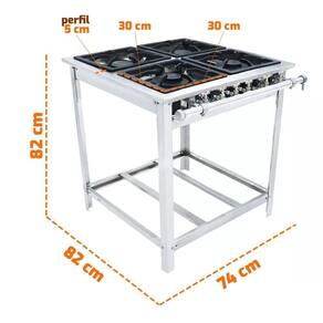 Fogão Industrial Extra Inox a Gás Baixa Pressão 4 Bocas 2 Duplas 30x30 Espera Ei4d2e - Venâncio