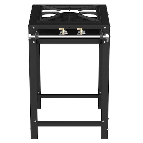 Características: Fogão Industrial FI 140, Baixa Pressão, 1 Queimador Duplo de 200 mm, com controle independente da queima de cada câmara, Trempe de Ferro Fundido de 40 x 40 cm, Queimador e Espalhadores em Ferro Fundido pintados, Perfil da Mesa em "U" de 70 mm, Bandeja Coletora de Resíduos, Corpo Desmontável facilitado o Transporte.