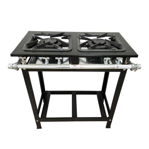 Modelo: CFZG-117 Funcionamento a gás GLP baixa pressão Estrutura em aço carbono com pintura a pó eletrostática Espessura 0,9mm (Chapa 20) Tubo de alimentação de gás de 1" 2 Grelhas de ferro fundido 30x30 Registro regulador torneira Durata 2 Queimadores Duplo de 175mm Consumo de gás Queimador Duplo 0,370kg/h cada queimador