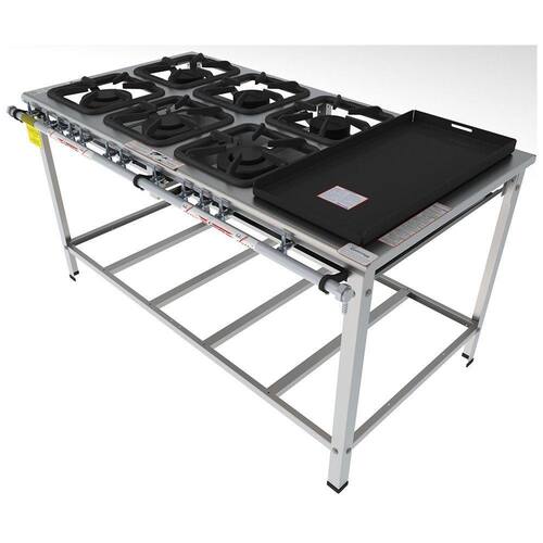 Ideal para Cozinhas Industriais que precisam de um Fogão Inox Robusto e de qualidade, o Fogão Gastromaq é fabricado com mesa de perfil 70 mm estampada e sem emendas. Sua estrutura em aço inox, tubulação em alumínio escovado, queimadores em ferro fundido e grelha de 30 X 30 cm com 6 braços garante robustez sendo o equipamento ideal para a sua cozinha industrial!
