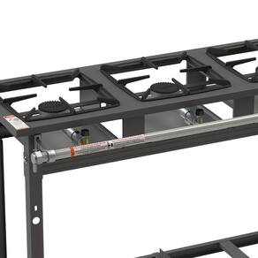 As grelhas são confeccionadas em ferro fundido no tamanho 30x30. O produto apresenta tubo coletor de gás pintado e bandeja coletora de resíduos.