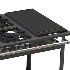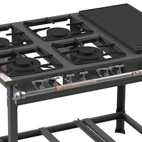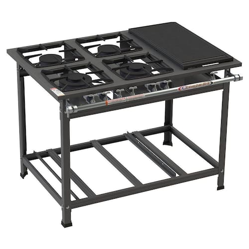 As grelhas são confeccionadas em ferro fundido no tamanho 30x30. O produto apresenta tubo coletor de gás pintado e bandeja coletora de resíduos.