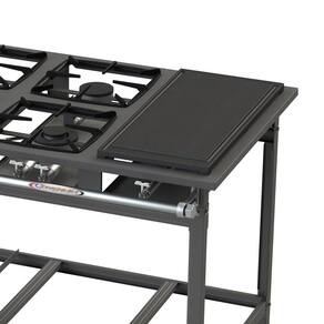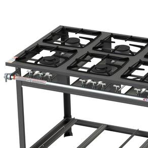 As grelhas são confeccionadas em ferro fundido no tamanho 30x30. O produto apresenta tubo coletor de gás pintado e bandeja coletora de resíduos.