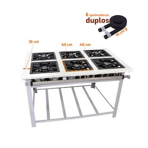 Fogão Industrial Maxi Inox Gás Baixa Pressão 40cm 6 Bocas Duplas Mi6d6 - Venâncio