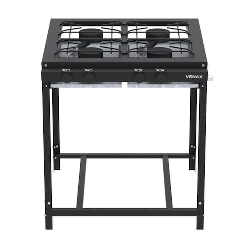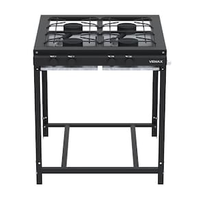 Características: Fogão Industrial NFI 430, Baixa Pressão, 4 Queimadores de 120 mm, Trempes Esmaltadas de 30 x 60 cm, Queimadores e Espalhadores em Ferro Fundido pintados de Preto, Perfil da Mesa em "U" de 60 mm, Bandeja Coletora de Resíduos, Corpo Desmontável facilitado o Transporte.