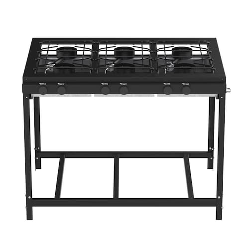 Características: Fogão Industrial NFI 630, Baixa Pressão, 6 Queimadores de 120 mm, Trempes Esmaltadas de 30 x 60 cm, Queimadores e Espalhadores em Ferro Fundido pintados de Preto, Perfil da Mesa em "U" de 60 mm, Bandeja Coletora de Resíduos, Corpo Desmontável facilitado o Transporte.