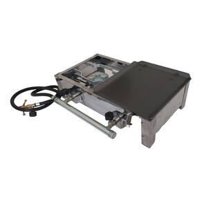 Medidas do fogareiro: Comprimento: 42 cm Largura: 22 cm Altura: 10 cm Mangueira: 98 cm Chapa: aço carbono de 2 mm de espessura Peso: 2,8kg