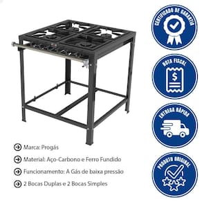 - Com 2 bocas duplas e 2 bocas simples, proporciona controle preciso da chama.