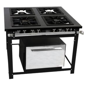 O fogão industrial 4 bocas linha maxi baixa pressão é ideal para estabelecimentos que necessitam de um equipamento de alto desempenho para potencializar a sua cozinha profissional, já que é indicado para ser utilizado em restaurantes, lanchonetes, bares, buffets, chácaras, espaços de festas e muito mais. Sua estrutura é confeccionada em aço carbono super resistente com acabamento em pintura a pó elestrostática e base fosfatizada, proporcionando muito mais durabilidade e robustez ao equipamento. Suas grelhas são confeccionadas em ferro fundido 40x40 e mesa com perfil 10 cm. Este fogão a gás possui tubo distribuidor (varão) de 1" com acabamento cromado, possuindo tampão e entrada de gás reversível. Seus queimadores contam com alto rendimento e potência, sendo 3.021 kcal/h nos queimadores simples e 5.586 kcal/h no modelo duplo. Além disso é totalmente desmontável facilitando o transporte e armazenagem do equipamento.