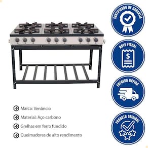 Fogão Industrial Venâncio A Gás Bravo 6 Bocas Padrão Br6b