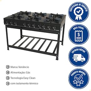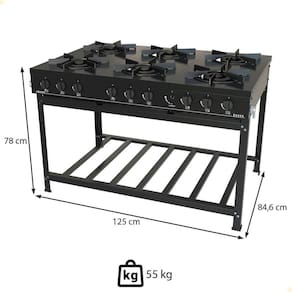 - Equipado com queimadores de alto rendimento, grelhas em ferro fundido e estrutura robusta, é a escolha certa para quem exige força, durabilidade e presença no dia a dia da cozinha .