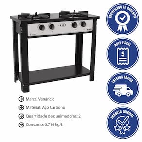 O Fogão Industrial Venâncio Bravo BR2VB possui 2 queimadores com chama tripla e uma potência de 3021 Kcal/h, proporcionando cozimento rápido e uniforme. Cada grelha suporta até 10 kg de carga.