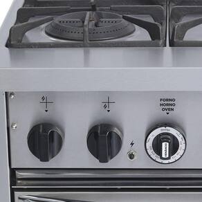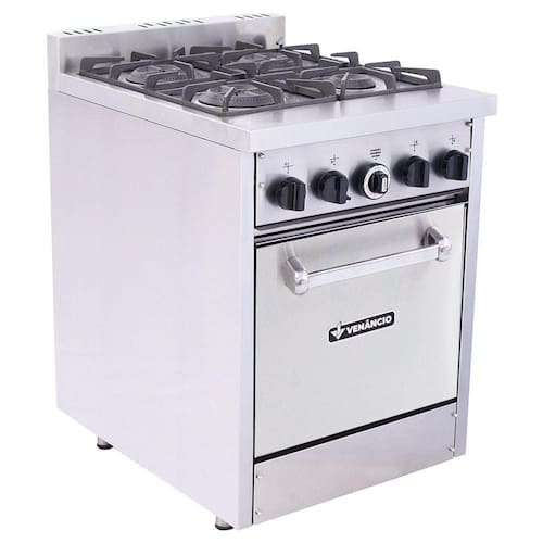 Os queimadores e grelhas desse Fogão Industrial Venâncio são produzidos em ferro fundido e esmaltado, conferindo uma grande longevidade. O comando de controle do forno é efetuado através de um registro com 5 posições e válvula de segurança! Conta com acendimento elétrico dos queimadores e forno, garantindo mais segurança e praticidade.