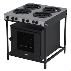 - Possui quatro queimadores em ferro fundido, trempes robustas com excelente estabilidade e acendimento manual.