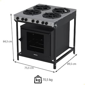 - Com 4 bocas potentes e mesa em inox, ele une robustez, fácil limpeza e visual moderno.