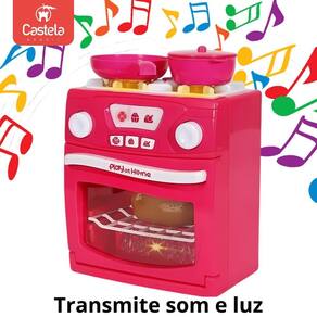 Fogão Infantil Brinquedo Som e Luz Fumaça Acessórios Castela Forno com Luz e Som Rosa - Castela