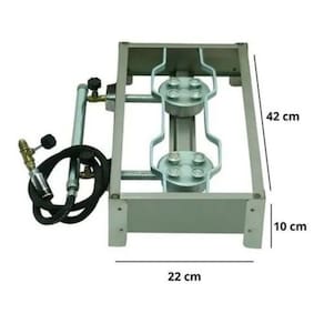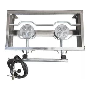 Marca: Estilofer Modelo: E005 Material: Aço inox Número de bocas: 2 Tipo de queimador: Alta pressão Controle de chama: Registros individuais Mangueira e registro inclusos: Sim