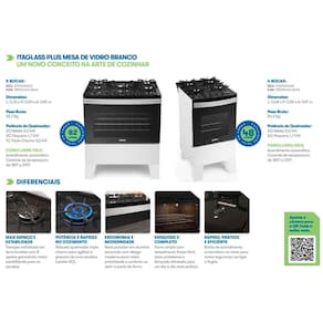 Atributos do Fogão Itaglass Plus 4 Bocas:O Fogão Itaglass Plus 4 Bocas se destaca por sua praticidade e durabilidade. Com um amplo forno e recursos modernos, como acendimento automático e luz de forno blindada, ele oferece conveniência e eficiência na sua rotina culinária. Além disso, o novo puxador em alumínio escovado confere um design elegante e funcional ao eletrodoméstico.