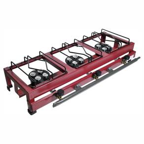 marca: roa linha: vinho alta pressão cor: vinho material: chapa de ferro pintada quantidade de bocas: 03 bocas 4caulins de alta pressão funcionamento: gás glp com registro mangueira normalizada