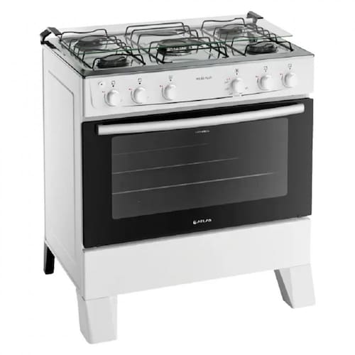 Fogão Milão Bivolt Plus 5 Bocas Automático Mesa de Inox Atlas - Branco Bivolt