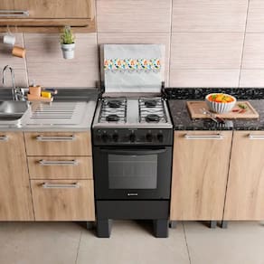 Forno: O forno com capacidade de 50 litros é suficientemente espaçoso para assar diferentes tipos de pratos, como assados, bolos e tortas. O interior com acabamento limpa fácil ajuda na remoção de gordura e sujeiras, economizando tempo na manutenção do produto. Ele conta ainda com uma grade deslizante, que proporciona praticidade na hora de inserir ou retirar os alimentos.