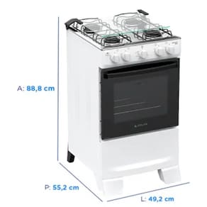 O forno possui capacidade de 48 litros, oferecendo espaco suficiente para assar diversos tipos de receitas, desde carnes ate bolos e massas. Conta com diferentes niveis de temperatura que chegam ate 290C, garantindo versatilidade no preparo dos alimentos. O acabamento interno em esmalte limpa facil reduz o acumulo de gordura e facilita a higienizacao, enquanto a grade deslizante traz mais praticidade ao manusear assadeiras e travessas.