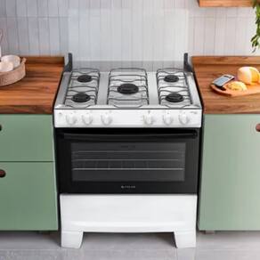 Cada detalhe foi pensado para trazer mais conforto no uso diario: puxador de aco longo e ergonomico, botoes removiveis que facilitam a limpeza, pes altos e resistentes que ajudam na limpeza do chao e tampa de vidro que protege a parede contra respingos. O Fogao Monaco Plus 5 bocas reune potencia, espaco e design moderno para transformar sua rotina na cozinha.