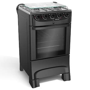 altura: 87cm | infotecnica_tipoacendimento: Acendimento automático total, na mesa e no forno | infotecnica_tensao: Bivolt | largura: 48,5cm | infotecnica_portaforno: De vidro | infotecnica_prateleiraforno: Uma grade ajustável em dois níveis de altura | infotecnica_tipofogao: A Gás, de Piso | infotecnica_peso: 16,4Kg | infotecnica_cor: Preto Fosco | infotecnica_queimadores: de Aço Esmaltado em Easy clean | any_modelo: Fogão 4B Preto MFI4BB | infotecnica_mesa: em inox