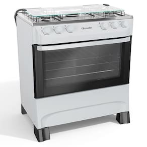modelo: Fogão 5 Bocas Branco MFI5BA | Cor: Branco | Tipo de acendimento: Manual | Altura (cm): 87cm | Mesa: Aço Inox | Largura (cm): 75cm | Peso (Kg): 22,7 | Voltagem: Sem voltagem | Tipo de Fogão: A Gás, de Piso | Prateleiras do forno: Uma grade ajustável em dois níveis de altura | Porta do Forno: De vidro | Queimadores: Esmaltado em Easy clean