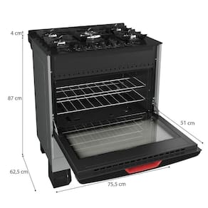 O destaque vai para o queimador central tripla chama de 3.700W, proporcionando uma Performance Gourmet que acelera suas receitas favoritas. Para garantir estabilidade e segurança, o fogão vem equipado com grades individuais de ferro fundido, que não só suportam firmemente suas panelas, mas também contam com um sistema de encaixe exclusivo Mueller, garantindo durabilidade e facilidade de uso por anos. Além de funcional, o MFV5BF é projetado para facilitar sua vida diária: o puxador ergonômico e moderno oferece um toque de beleza enquanto proporciona conforto ao abrir a porta.